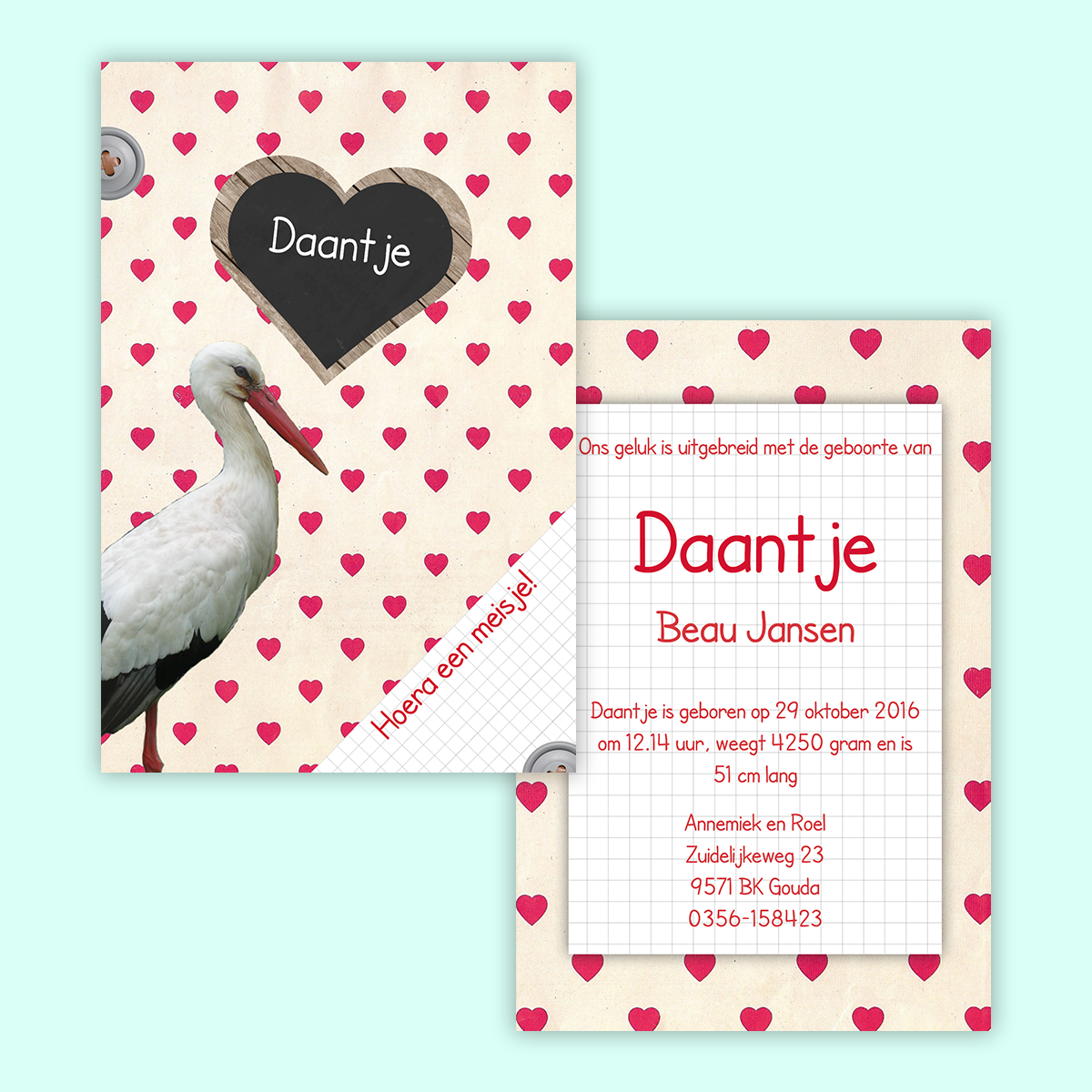 geboortekaartje vierkant dubbel 01.01.050