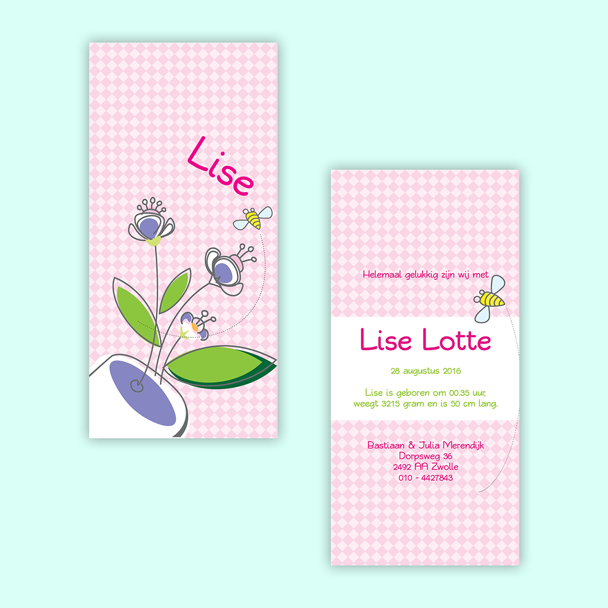 geboortekaartje vierkant dubbel 01.01.050