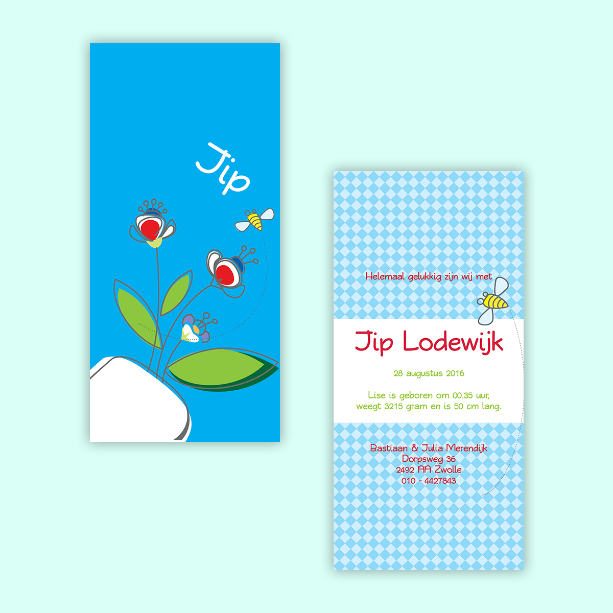 geboortekaartje vierkant dubbel 01.01.009